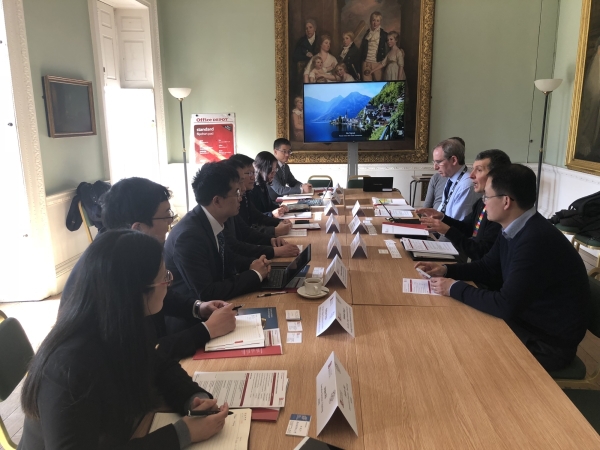3月20日,代表团一行赴位于伦敦西南部的布里斯托大学开展交流会谈。布里斯托大学负责国际事务的副校长Eric教授、工学院院长Fabrizio教授等接待了代表团一行。王敬东感谢Eric校长百忙之中抽空与南航代表团会面,并称布里斯托大学是全球知名的高等学府,在航空航天领域的地位不可动摇,双方在学科设置方面有许多共同之处,可在电气工程、自动化、电子信息工程等领域开展合作办学、学术合作。Eric副校长感谢南航代表团来访,希望双方以合作办学为开端,并借助举办学术研讨会等形式,探索两校合作的模式,加强校际合作交流。随后,双方就4月在我校举办的双边学术研讨会的安排、2+2合作办学等内容进行了深入交流并达成共识。随后参观了电力电子工程系华人教授原熙博教授的能量转换实验室,并邀请他4月份到南航来进一步交流。