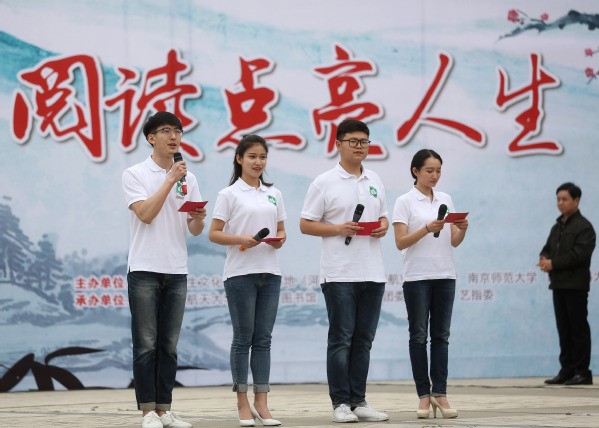 4月21日“阅读点亮人生”四校百人诵读活动成为最大亮点。在我校将军路校区国旗广场,百余名大学生声情并茂朗诵《论语》、《诗经》、《少年中国说》等诗词,并配以汉服、戏曲表演,给众多观众带来美轮美奂的视听享受,现场掌声不断、激情澎湃,反响热烈。各家媒体纷纷报道,提高了我校的社会影响力和美誉度。
