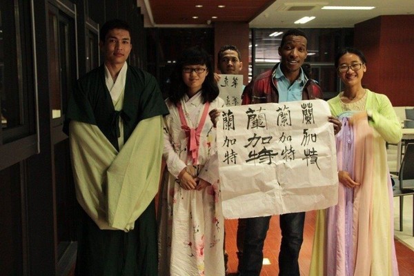 在馆员指导下,学生自主开展中国文化体验活动,已举办了武术学习、汉服表演、中国茶艺欣赏、中国书法学习等10余期,留学生积极参与、喜爱有加。与我校的国际教育学院合作,打造留学生活动品牌:“地球村之旅——走进**国”,留学生用PPT或动画、微电影等方式展示自己国家的政治、国貌、民俗、旅游等内容,表演民族特色舞蹈,品尝当地美食,展示特色纪念品。地球村之旅——“走进肯尼亚”、“走进尼泊尔”2场活动,通过对留学生本国文化艺术的全方位展示,推动各国学生之间的文化交流和互动,都获得非常好的效果。