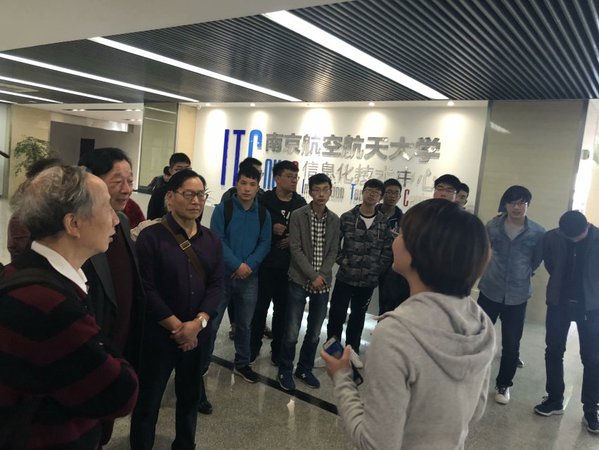 随后,师生乘车来到将军路校区,在信息化处王玮老师的引导下参观了信息化技术中心,老党员们惊叹于学校迅猛的发展,鼓励同学们要不忘初心,牢记使命,珍惜学校提供的平台,为南航、为祖国的发展交出新时代的新答卷。