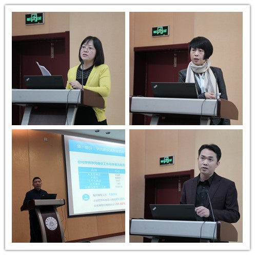 研工部副部长王亚彤深入分析了国家及学校层面研究生教育背景,结合在校研究生的基本数据、心理健康情况及研究生辅导员的队伍建设部署重点工作。校团委副书记李君从五个方面分析了当前工作中存在的难点和问题,并对标新时期校党委、上级团组织的要求,和南航青年成长成才的实际需求,提出了工作思路。学生处副处长徐曙峰分别从学风建设满意度调查分析、学风建设工作数据分析、工作举措及学风建设工作建议四个方面入手,用大量详实的数据、图表作了深入、细致的学风情况分析。学生处处长侍旭从思想政治教育、日常管理、辅导员队伍建设、安全稳定和心理健康教育等方面解读了十七项重点工作,提出了新时代下如何做到工作的“定位、到位、品位”以及实现“精准”思政的具体举措。