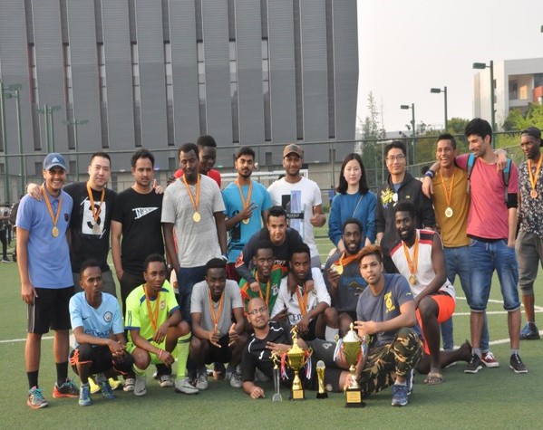 最为激烈的比赛莫过于最后一天举行的足球赛决赛了,由1914队对阵Fabiyo队,观看比赛的观众们涌向足球场为运动员们加油助威,队伍双方的支持者也都卯足了劲儿,为自己的队伍摇旗呐喊。最终,来自坦桑尼亚就读大四的巴卡,临门一脚,击败Fabiyo队,为1914队牢牢锁定胜局。国教院充满朝气和青春的啦啦队的队员们更是在赛场上卖力的表演,用充满活了和热情的舞蹈,把赛场的运动氛围推向了一个又一个高潮,成为本次运动会上一道绚丽的风景。