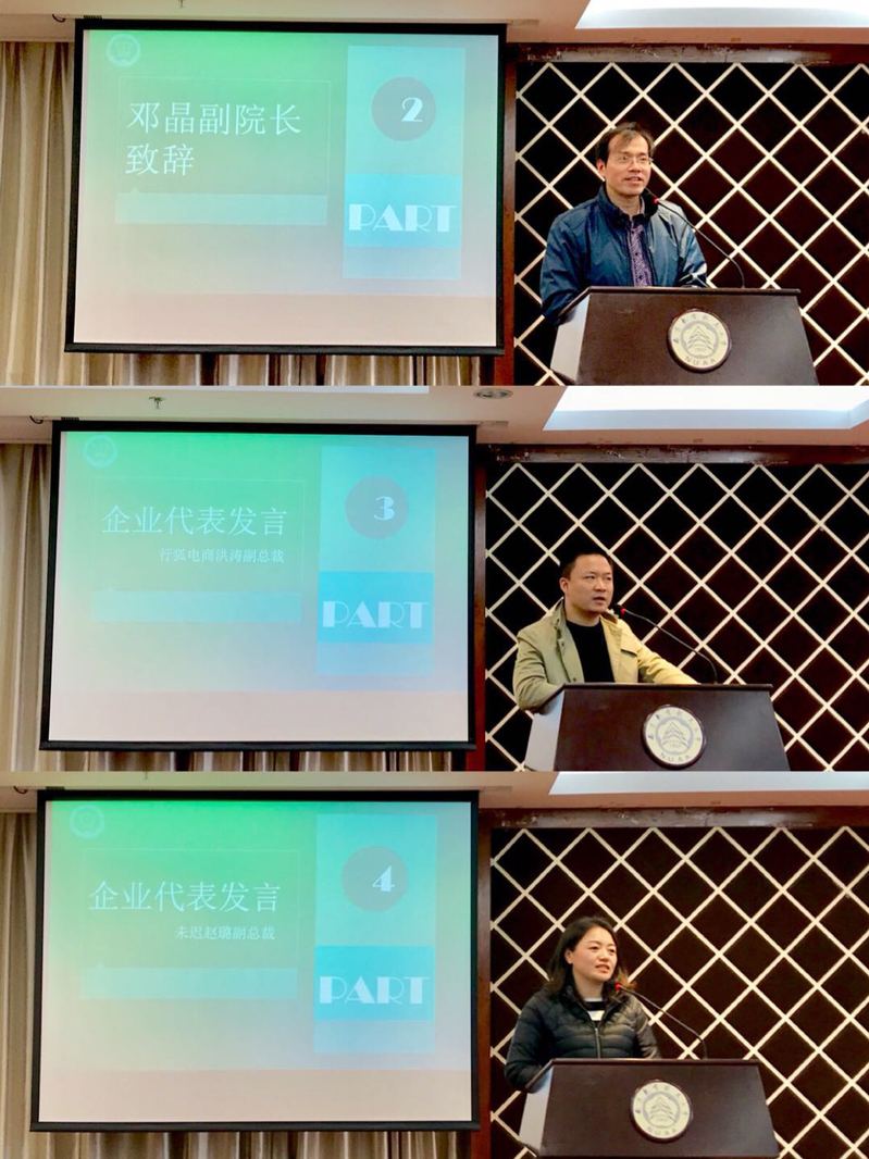 行狐电商副总裁洪涛从企业的角度分析了电子商务创新区的价值。洪涛希望各位同学在课题研究的同时,其成果能给企业带来利润,以此实现价值。未迟数字营销赵璐副总裁在发言中,希望同学们要多参与课题研究与创新,把握住学校提供的这些机会,多多实践,发现自己的闪光点和自己想为之付诸努力的职业方向。邓晶副院长为本次课题研究的指导老师颁布聘书,米传民老师为参与课题的团队代表授予任务书。
