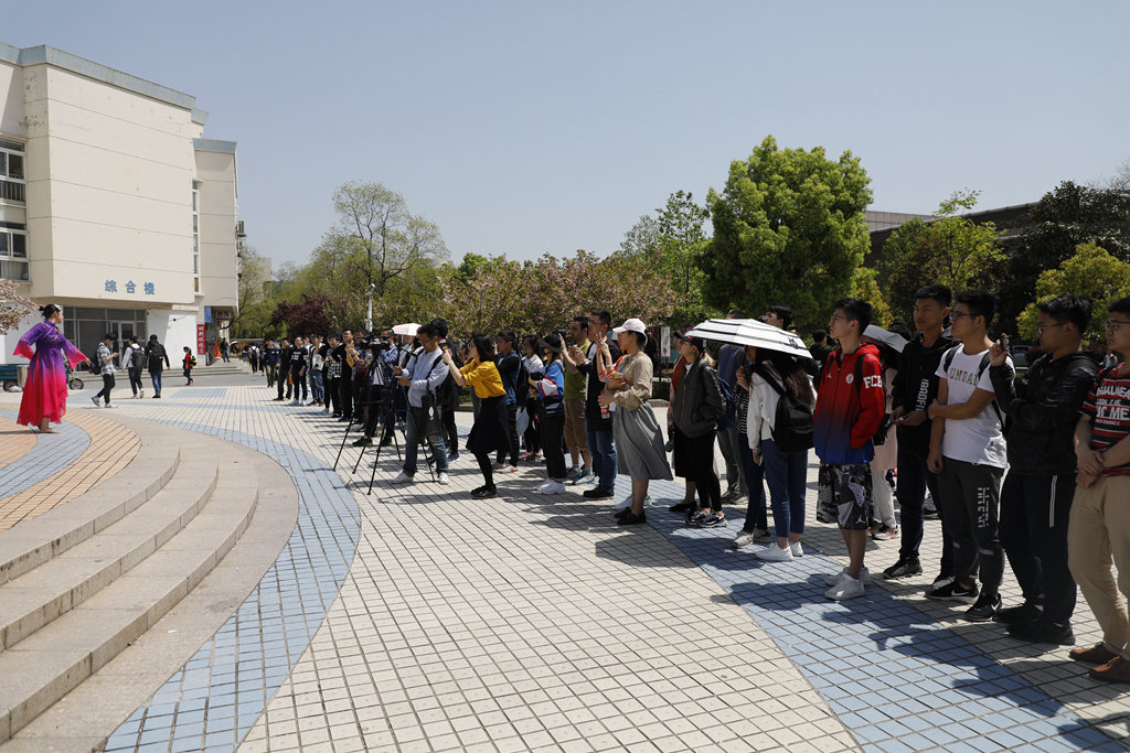 正午的暖阳下,一群身着戏服的人突然出现在樱花广场上,在同学们好奇的目光注视下表演起来。京剧《梨花颂》选段方才曲尽其妙,另一位表演者即从樱花中踏歌而来献上昆舞《芳春行》,最后越韵古诗《无题》压轴登场,演员们躬身舒展,流转舞台尽显风韵,整场快闪演出精彩绝伦,演员们用实力证明南航的学子们不仅会造飞机,还能玩转戏曲,引得台下观众齐声喝彩。