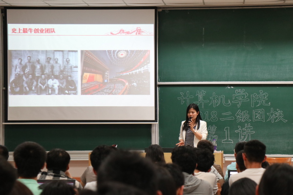 近日,计算机学院2018年二级团校第一讲在将军路校区6301教室举行。典礼由院团委书记阙愚老师主持,马克思主义学院何畏老师受邀为学院全体团干部、入党积极分子、党员等200余名同学做今年计算机学院二级团校开班典礼嘉宾,并首讲《人间的普罗米修斯——走近马克思》。