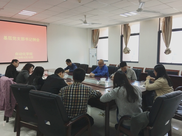 4月10日,自动化学院召开基层教工党支部书记例会,部署学院第四次党员(代表)大会筹备工作,并传达学习了学校关于落实全面从严治党监督执纪实施细则的征求意见稿。学院党委书记刘建成主持会议,党委副书记张跃、团委书记刘斐文以及各基层教工党支部书记参加会议。