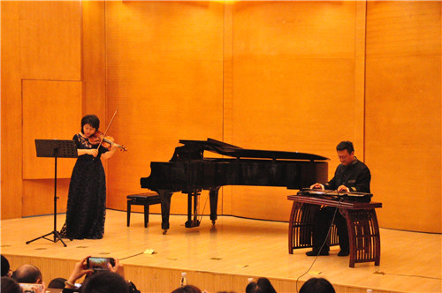 不同于以往的小提琴音乐会,本次“讲座音乐会”每一首曲目的演绎都配合了学术性的介绍,艺术学院副院长板俊荣教授主持本场音乐会,并从专业角度对音乐会的曲目进行解读,帮助观众对曲目有深入的理解和把握,提升了音乐会的专业性和学术性,既是一场音乐盛宴,更是一场学术大餐。充满温馨回忆的《思乡曲》、令人无限感慨的《阿什肯别离曲》与《沉思》、浓厚吉普赛风格的《流浪者之歌》、依稀游子思乡情的《关山月》等曲目,一曲曲道尽乡愁,一弦弦诉尽衷肠,丝丝入扣的音符把在场的所有人都带进了小提琴的国度。《行行重行行》,与君生别离;犹记《念故乡》,荣耀归故里;偶得《故乡行》,山间遥相应……让观众们沉浸在音乐、文化和学术的交融赏析之中。