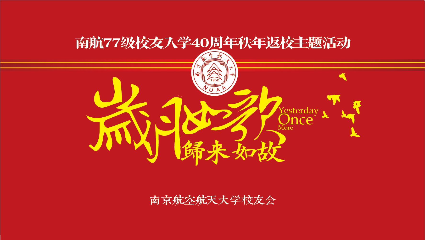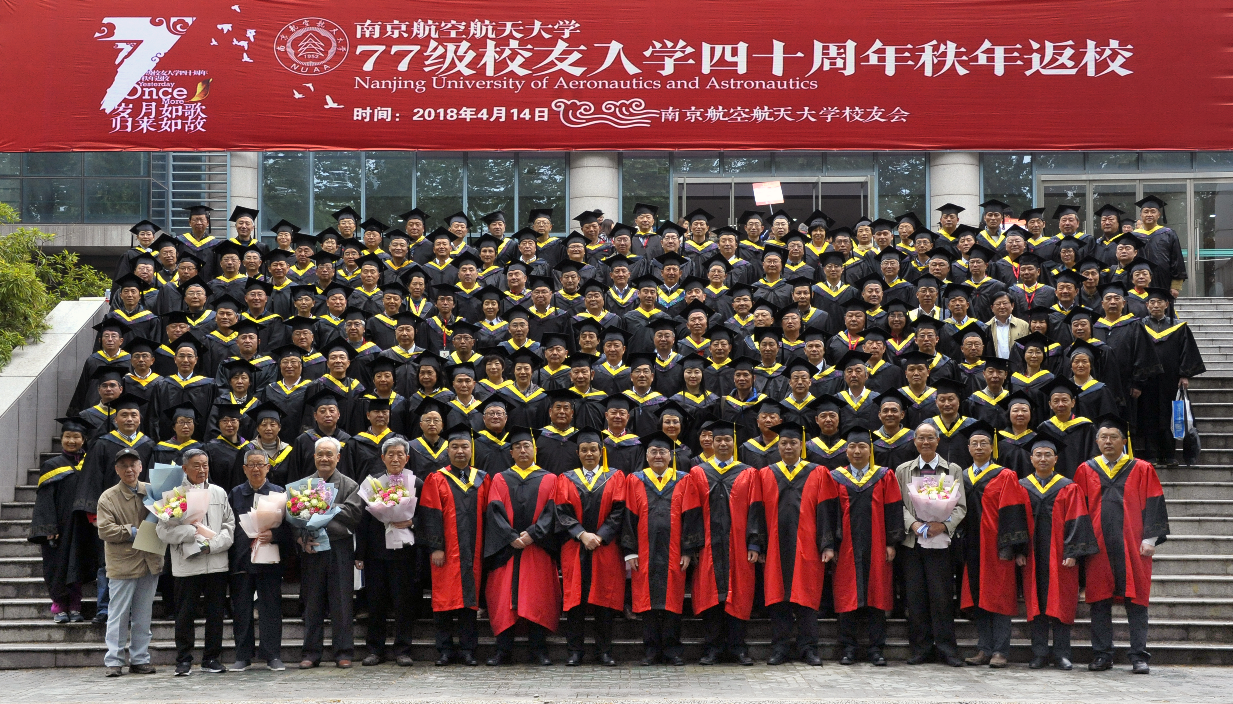 77级校友作为恢复高考后的我校首批大学生,是历经磨难的一代,也是幸运的一代。他们为社会主义现代化建设做出了突出贡献,是学校十五余万校友的优秀代表。他们脚踏实地、勇担重任,是学校跨越式发展的亲历者和参与者,更是南航精神的共同创造者,是学校宝贵的精神财富。学校为此还开展了校友“智•道”论坛,学院师生座谈会、学术论坛等一系列活动。希望借此机会把他们为祖国的改革开放,为国家的航空航天以及各行业领域发展过程中所体现的智慧、精神等宝贵财富传递给到我们在校的每一位师生。