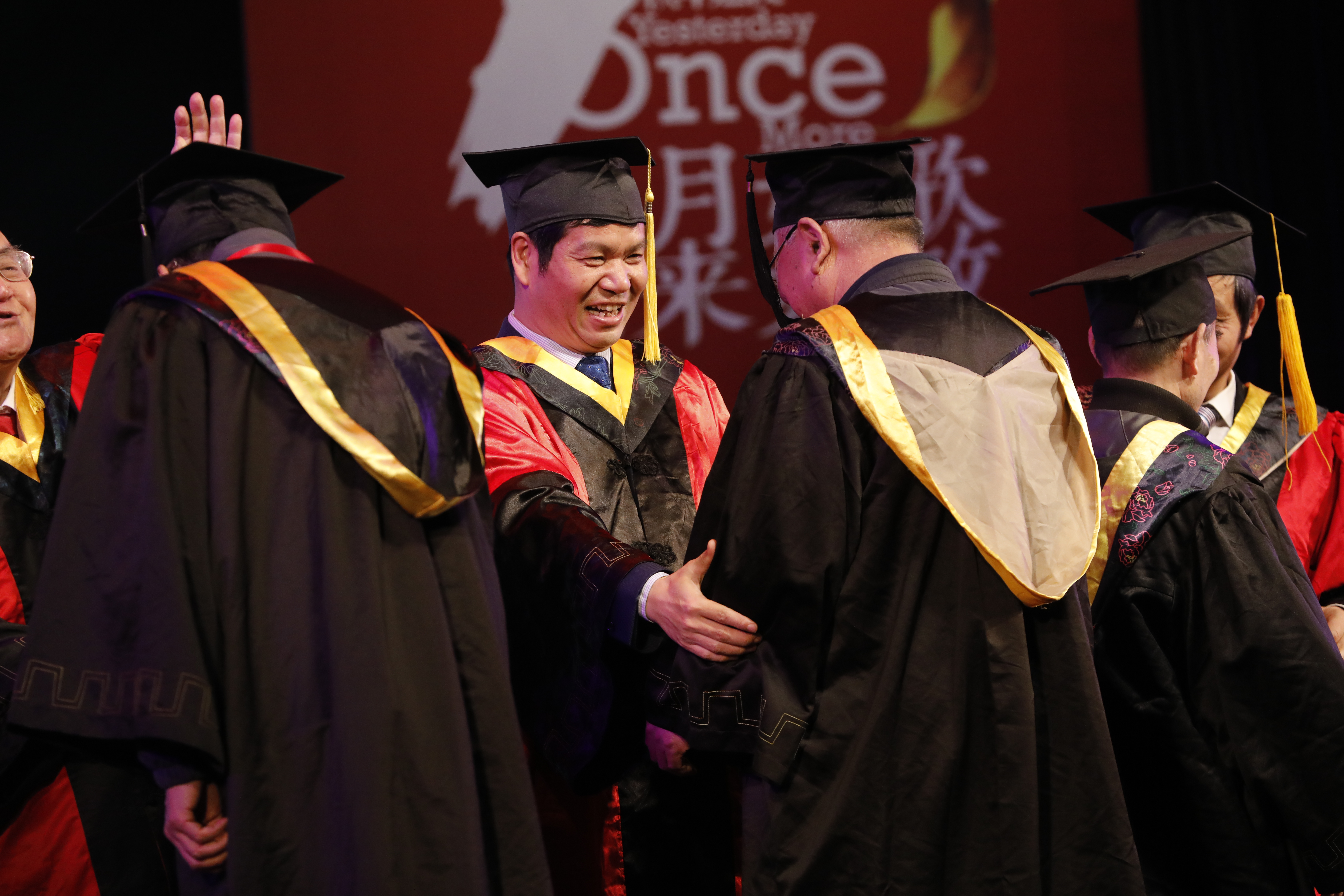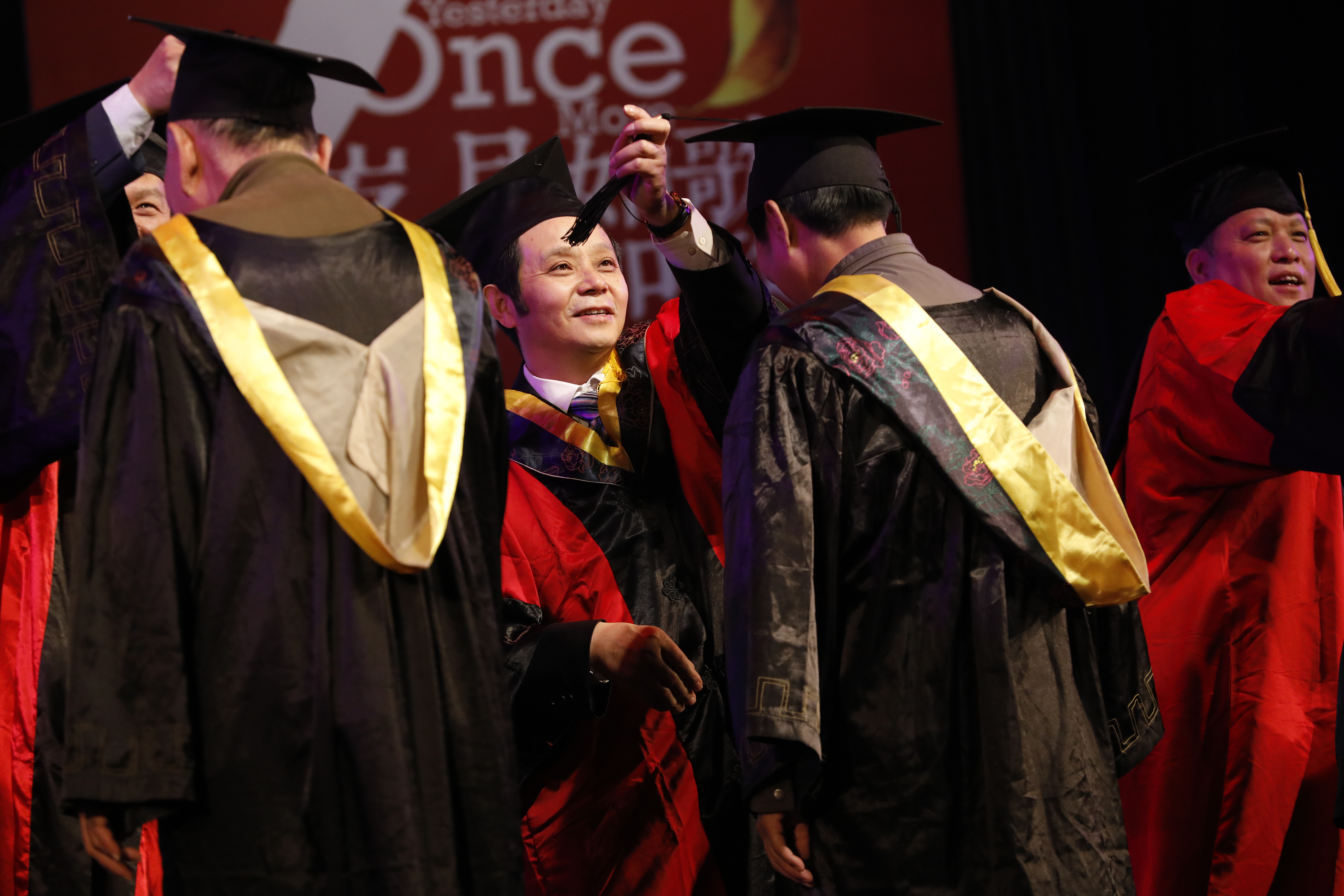 一场特殊的“学位授予:援正流苏仪式”以及以表现校友们追逐梦想、志在蓝天的舞蹈《逐梦云天外》将现场气氛推向了高潮。校友们身着学位服,郑永安、聂宏、朱剑英、许希武、宋迎东、陶勇以及相关学院的院长身着导师服,为校友们援正流苏,重温当年毕业时的庄严与激动,感受学位授予仪式的神圣。校友们被深深感动,作为南航人的自豪感和幸福感油然而生。