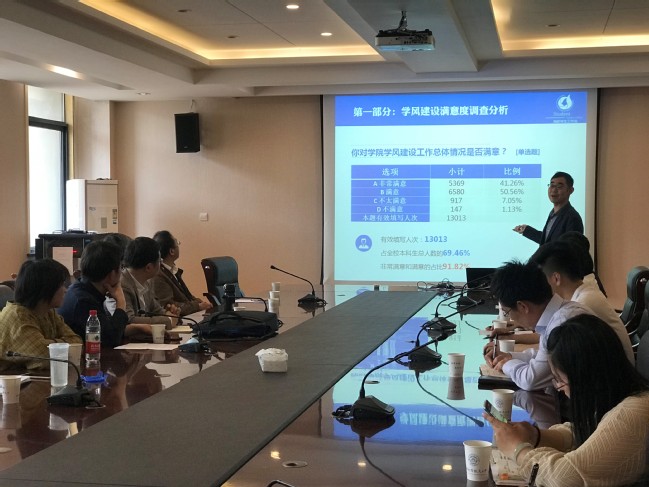 会议伊始,张书记结合校、院两级开展的学风调研情况,从学生学风建设满意度调查分析、学风现状分析、学风建设着力点分析以及2018年重点推进的工作等四个方面对学院学生学风现状和后续工作思考进行了介绍。