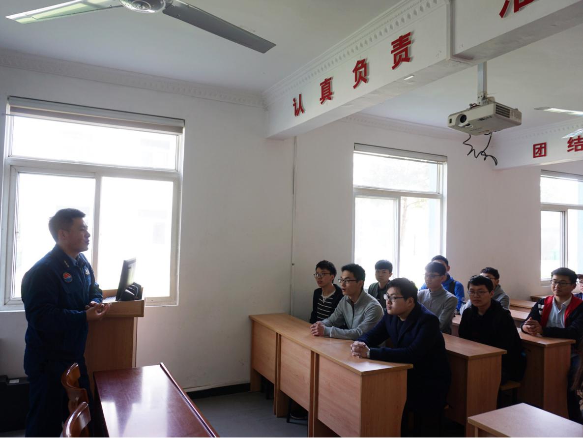 接着,指导员与同学们进行了一场座谈交流会。会上,同学们都积极地提出问题,连长和指导员也耐心的为同学们解答。同时,指导员还叮嘱同学们:当代的大学生要学会自律,向军人的生活作风看齐,努力学习知识,为航天报国打下坚实的基础。随后,机务人员带同学们参观,并详细地介绍了两架直升机:米—171和直8。同学们还进入直升机,参观了直升机的内部结构,体验了直升机的驾驶舱。最后,同学和老师们一起在直升机前拍照留念。