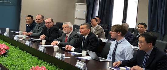 本次研讨会由国际合作处、电子信息工程学院主办。会议参会代表近30名,其中有来自英国布里斯托大学理学院院长Tim Gallagher教授、材料化学专家CharlFaul教授、数学统计学专家Feng Yu教授和工学院院长Andrew Nix教授、复合材料研究机构主任FabrizioScarpa教授、电气能源管理研究组Xibo Yuan教授以及国际合作交流管理负责人Michael Benson先生。同时,我校电子信息工程学院、自动化学院、材料学院、理学院、国际合作处、教务处、国教院等单位相关负责人及教师代表也参加了会议。