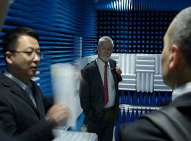 会议开幕前,电子信息工程学院常务副院长周建江带领英方代表参观了雷达成像与微波光子技术教育部重点实验室,参观过程中,英方人员对学院微波暗室的建设规模给予了高度评价。