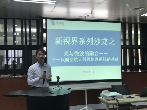 4月11日,理学院“新视界”系列沙龙第二场以“光与微波的融合——下一代航空航天射频信息系统的基础”为主题,邀请到电子信息工程学院潘时龙教授做客沙龙,主要面向理学院物理专业本科生介绍了微波光子学在未来机载射频信息系统的应用。