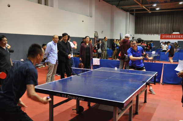 比赛中,队员之间配合默契、斗志昂扬;啦啦队们热情高涨,阵阵呐喊声使得现场气氛热烈活跃。经过这么多年的赛事,我校乒乓球运动已经成为教职工强身健体的一项重要途径,平时的校乒乓球馆以及教职工活动中心的乒乓球室都常常“台无虚席”,南航教工的乒乓球水平在江苏省高校已经处于前列。