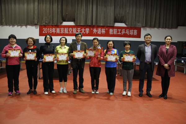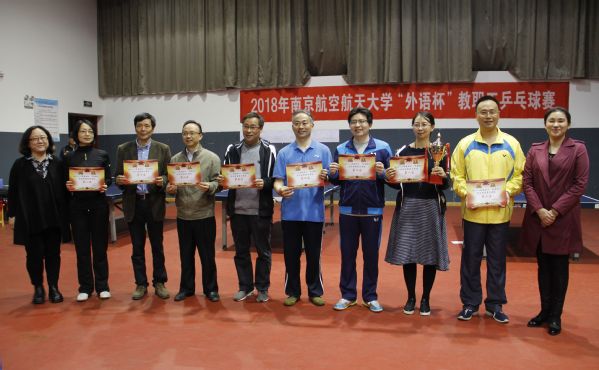 4月13日,由校工会主办,外国语学院承办的2018年南航教职工“外语杯”乒乓球比赛在我校明故宫校区体育馆顺利闭幕。本届比赛共吸引了来自全校院级工会的32支代表队参加比赛,其中男子17支代表队,女子15支代表队。从4月10日到4月13日,短短的四天时间体育馆乒乓球馆热情洋溢,参赛选手充分展现了精湛的球技和很好的团队协作精神。