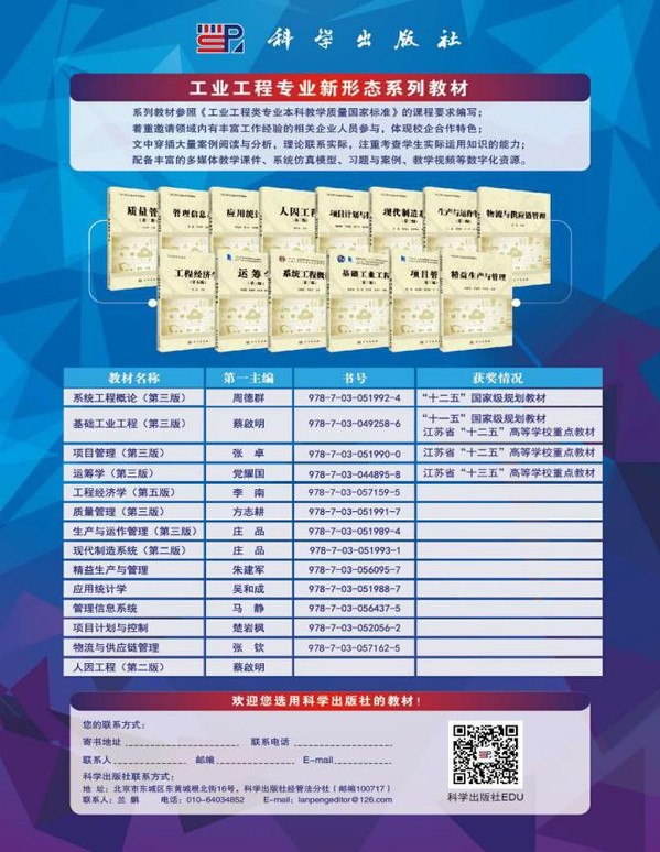 高质量教材建设是科研促进教学的有效途径,是教学质量提升的有力保障。据悉,经济与管理学院以教材建设为牵引,积极推动培养方案修订、精品课程建设和教学团队建设,工业工程专业经过充分调研和认真梳理,规划建设了15本二维码教材,并与科学出版社签订了整体出版合同。经过两年十余位老师的努力,目前已全部建成,凸显了在线课程等数字资源的充分融合、专业核心课程全覆盖、校企深度协同的特色。