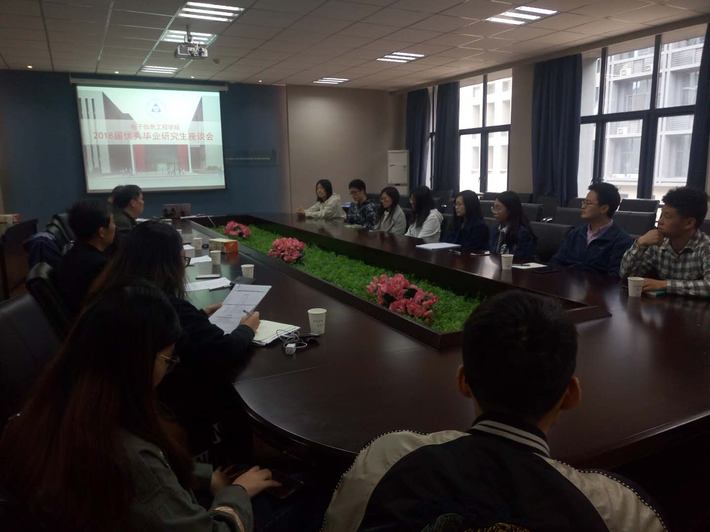 4月12日下午,电子信息工程学院召开2018届优秀毕业研究生座谈会,电子信息工程学院党委书记聂东林、常务副院长周建江、副院长赵永久、党委副书记黄彬、院长助理何小祥、毕业班辅导员张晓媛及10余名2018届优秀毕业研究生代表参加了此次座谈交流会。