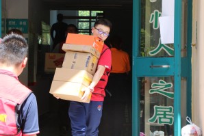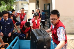 烈日炎炎,却挡不住大家的热情和干劲。在充分准备、细致分工的基础上,民航学院15级党支部的党员们和公寓服务中心党支部的工作人员们万众一心、齐心协力,帮助14、17级学生搬运行李,有序高效地完成了行李的搬运工作。