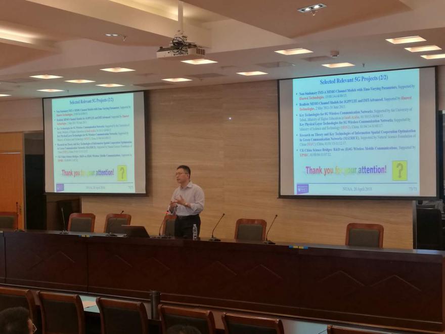 2018年4月20日,IEEE Fellow、英国赫瑞-瓦特大学(Heriot-Watt University)王承祥教授应电子信息工程学院副院长吴启晖教授的邀请来院访问,做了题为《Wireless Channel Model for 5G and Beyond》的学术报告。图书馆馆长王成华教授、电子信息工程学院副院长吴启晖教授、电子信息工程学院相关专业老师和学生参加了学术报告会。