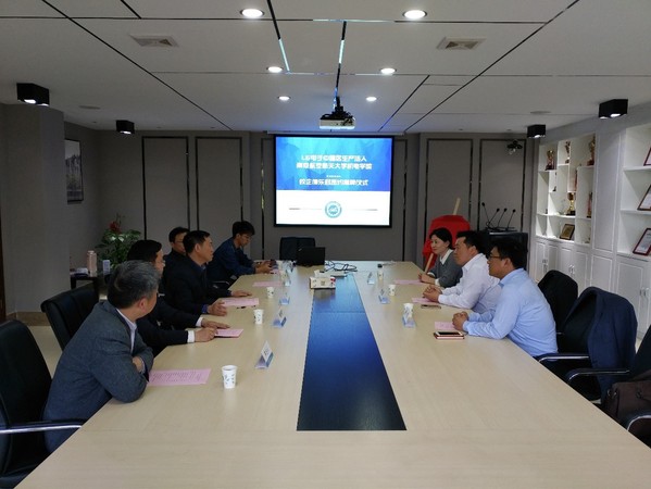 4月18日下午,LG中国区生产法人-南京航空航天大学机电学院校企俱乐部签字揭牌仪式在明故宫校区15-B341会议室举行。LG电子中国区人事部总监李元辰、南京乐金熊猫电器有限公司人事Team长姜豪、LG电子中国区人事部经理李芳芳,机电学院党委书记袁智强、校教务处副处长朱建军、机电学院副院长郭宇、机械工程卓越班导师薛建彬与本科生辅导员顾悦参加了本次签约揭牌仪式。
