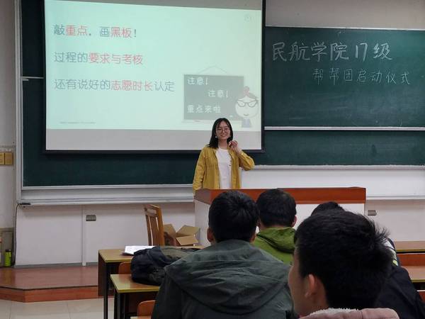 “帮帮团”一直是民航学院的传统,宗旨就是让学有余力的同学能够带动学习方面有困难的同学,一起学习,共同进步,本次“帮帮团”启动后,会给同学们提供一个交流分享学习成果的平台。同学们在这里不仅可以收获知识,还可以收获友情,长此以往,对学院的整体成绩的提升和学习氛围的打造以及学风的建设会有很大的推进作用。