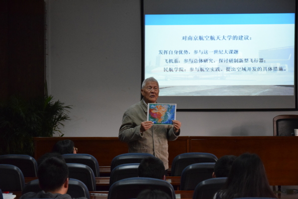 4月24日,航宇红课堂暨航宇职课堂第一讲——《飞好“空中丝绸之路”,开发中国空域资源》在明故宫校区18号楼开讲。本期课堂邀请到了北京中航通信息研究所首席专家、我校兼职教授,曾任航空研究院628所副总工程师,航空工业部中国民用飞机开发公司副总经理李大立老师为学生们主讲,航空宇航学院党委副书记许静,91岁高龄的退休教师乔新,学院关工委副主任梅卫胜老师,民航学院辅导员范伟、朱岚,航空宇航学院辅导员肖秋莹、张小斐和一百多名学生聆听了讲座。