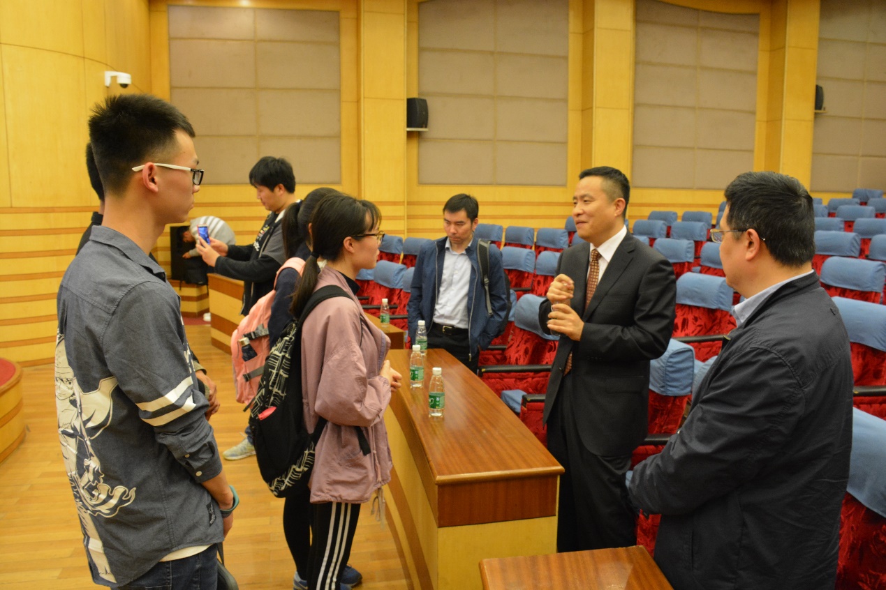 孙泽洲对我国在未来深空探测技术方面进行了展望,他说道:“探索是人类进步永恒的动力。”,向在座同学们阐述了未来深空探测的热点目标。在讲座最后的互动环节中,我校学生踊跃发言,孙泽洲对学生们关于月球探测的技术和未来展望等问题作了细致的讲解。结束后,数位学生簇拥孙泽洲就航天探测领域的知识进行探讨,孙泽洲一一为学弟学妹们答疑解惑。