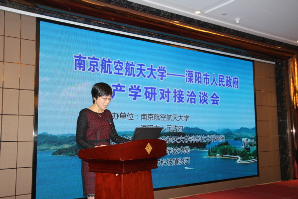 2018年4月27日,科学技术研究院副院长沈建新带队,航空宇航学院、能源与动力学院、电子信息工程学院、机电学院、材料科学与技术学院等学院领导及教师代表一行13人赴溧阳市参加“2018年南京航空航天大学——溧阳市产学研对接洽谈会”。