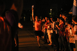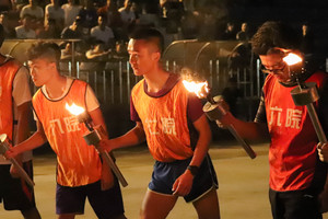 精彩的开幕式表演后,院党委副书记李和新老师将点燃的火炬传递给第一棒选手。火种在师生间传递,火焰映照在脸上,闪烁着奋斗进取的耀眼光芒,点亮了五四夜晚的征程。每支比赛队伍由十男两女共十二名队员组成,在校园内按照指定路线进行接力比赛,火炬在手中接替,完美诠释了“薪火相传”的主题。