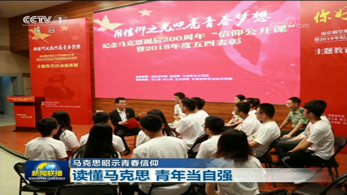 2018年5月4日和5日,中央电视台《朝闻天下》、《新闻联播》连续报道我校在马克思主义教育中的典型做法和优良传统。在5日的《新闻联播》当中,节目以“读懂马克思 青年当自强”为题,以近4分钟的时长,对我校开展马克思主义信仰教育进行了专题报道,立体呈现我校马克思主义教育成果,引发积极广泛的社会反响。现将《新闻联播》播发内容全文转载:
