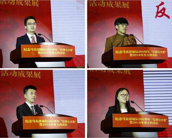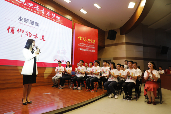 在第二篇章“心中的信仰,前行的力量”中,马克思主义学院教师何畏与青马工程骨干班40名学员共同呈现了一堂信仰公开课,何畏老师以“信仰的味道”为题,带领在场师生感受了马克思主义之美。除了何畏老师的精彩讲解,学员们也纷纷成为课堂主角,向200岁的马克思献上了自己精心准备的礼物,让整个课堂都“活”了起来。现场学员以互动书信、即兴演讲、现场绘画、三行情诗等不同形式诠释自己心中的马克思。此外,已在部队服役的自动化学院2015届校友尹欣繁不远千里回到活动现场,通过回顾自己大学期间受到的马克思主义深刻影响,表达了对马克思主义、对信仰的坚守。