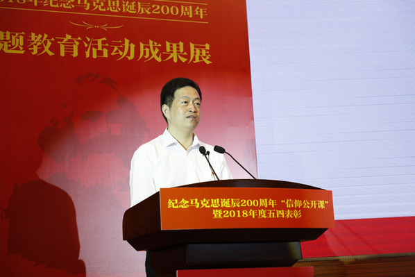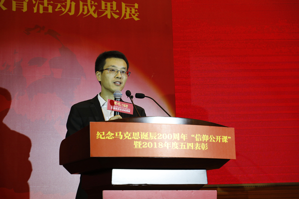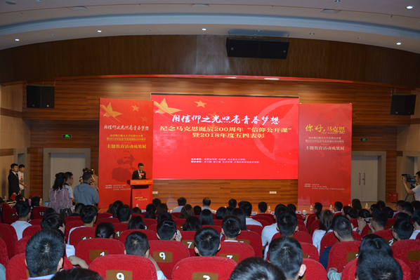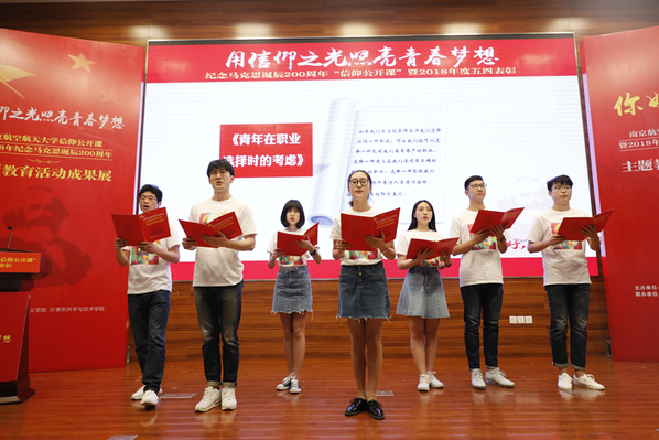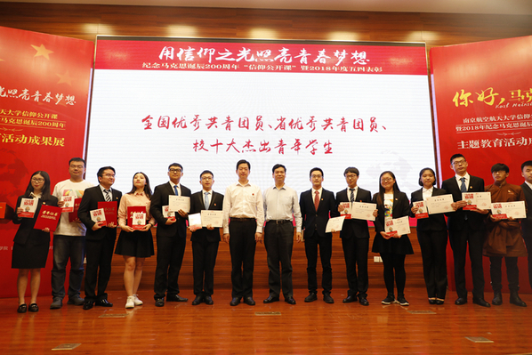 在马克思诞辰200周年之际,5月4日下午,“用信仰之光照亮青春梦想”南京航空航天大学纪念马克思诞辰200周年“信仰公开课”暨2018年度五四表彰在我校将军路校区主楼报告厅举行。共青团江苏省委副书记林小异、江苏省委宣传部理论处处长尤健、江苏省教育厅社政处处长王伟、校党委书记郑永安、纪委书记杭育新、党委副书记陶勇,相关职能部门负责同志、各学院党委副书记及团员代表出席活动。