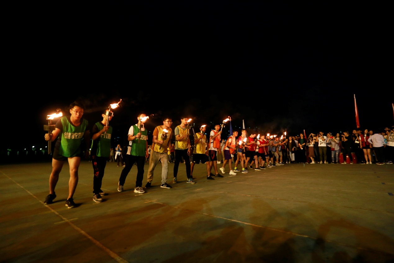 理学院学生智恒代表运动员庄严宣誓。国旗班及优秀学生代表护送国旗、团旗和五四⽕炬走向主席台,陶勇为各学院党委副书记点燃手中象征着希望的火炬,各学院党委副书记将五四火炬传递到代表队第一棒队员手中。随着发令枪响,运动员们高举火炬飞奔而出,现场掌声雷动,校园里跃动着五四的火炬,洋溢着青春的激情和活力。校园十佳歌手黄诗雨、郑雨献唱《最初的梦想》。伴随着歌声、加油声、呐喊声,运动员们勇往直前、奋力拼搏。