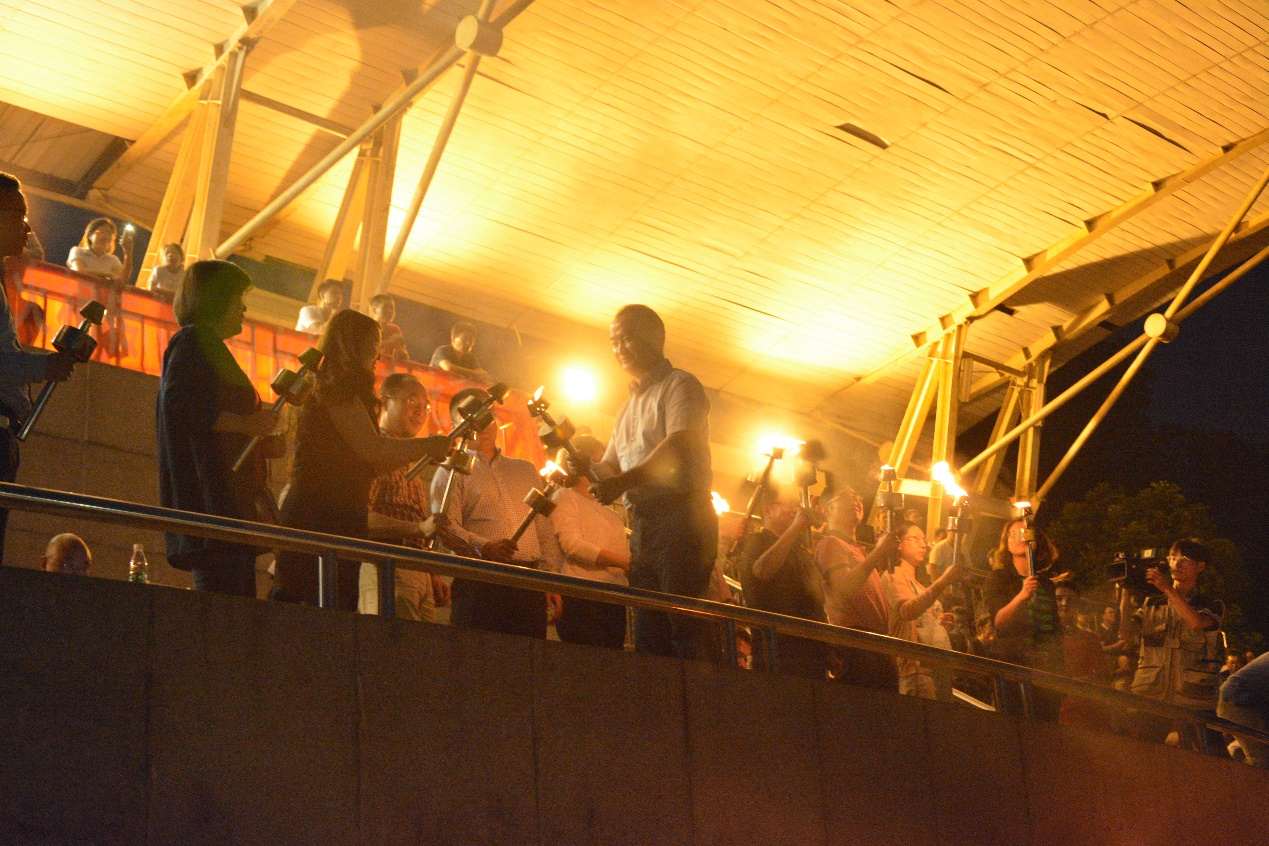 5月4日晚,2018年 “明御•翠屏”校园青年文化节“薪火相传”五四火炬接力赛在将军路校区西操场举行。校党委副书记陶勇,校党委常委、宣传部部长王晖,学工部、研工部、将军路校区管委会、体育部、校团委的相关负责同志和各学院党委副书记出席活动,15个学院青年学生代表到场进行接力赛角逐。
