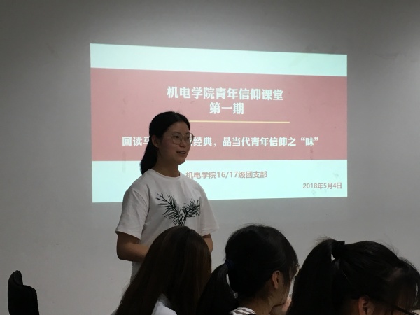 线下主题教育活动依托“机电青年信仰课堂”系列主题教育活动,以“回读马克思主义经典,品当代青年信仰之味”为主题,面向2016级、2017级团学干部进行理论学习和分享交流。本次主题分享交流会于2018年5月4日晚八点半在将军路校区学工楼210会议室举行,机电学院2016级辅导员康怡宁、2017级辅导员刘洪达以及两个年级的学生团干部参与了本次活动。