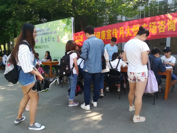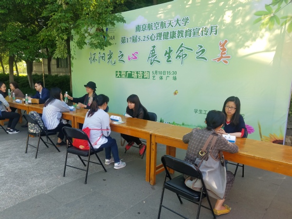 5月10日下午,由学生处、研究生院主办的第17届“5.25”心理健康教育宣传月之大型广场心理咨询活动在将军路校区举行。本次活动的主题为“怀阳光知心,展生命之美”。来自东南大学、河海大学、南京师范大学、南京信息职业技术学院四所高校的心理咨询专家们以及我校心理健康教育中心老师们为我校师生提供一对一的现场广场咨询服务。