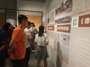 接下来走进展厅,展览以马克思一生的思想发展、理论创作,以及马克思主义在传播中的发展为主线,以马克思主义的诞生、社会主义从空想到科学的发展、剩余价值理论的发现、马克思晚年的生活和探索、马克思主义在传播中的发展五个阶段的内容展开,弥足珍贵的马克思原始手稿《布鲁塞尔笔记》、22米长的《共产党宣言》书法长卷、一块块文献展板、一把椅子、一面书墙,将风云激荡的200年历史交织、凝固,以充满艺术气息的形式展现了马克思主义的真理力量。回溯思想巨人马克思的人生历程、感受马克思的精神世界,同学们都深受感触,被马克思一生为共产主义不懈奋斗的执着精神所感染。