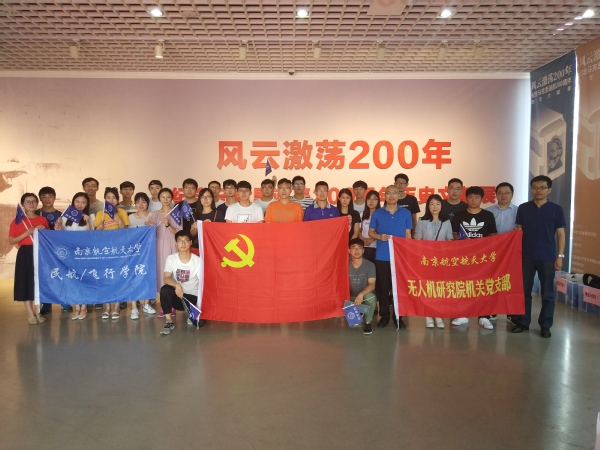 5月18日上午,民航学院研究生党支部和校无人机研究院机关党支部一同走进南京大学仙林校区星云楼美术馆,参观南京大学“风云激荡200年——纪念马克思诞辰200周年历史文献展”。展厅入口,一尊两米多高的马克思雕像,直立挺拔,左腿前迈,目光深邃、从容淡定,传递着坚定前行的力量。