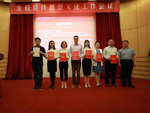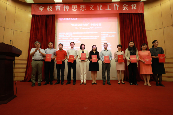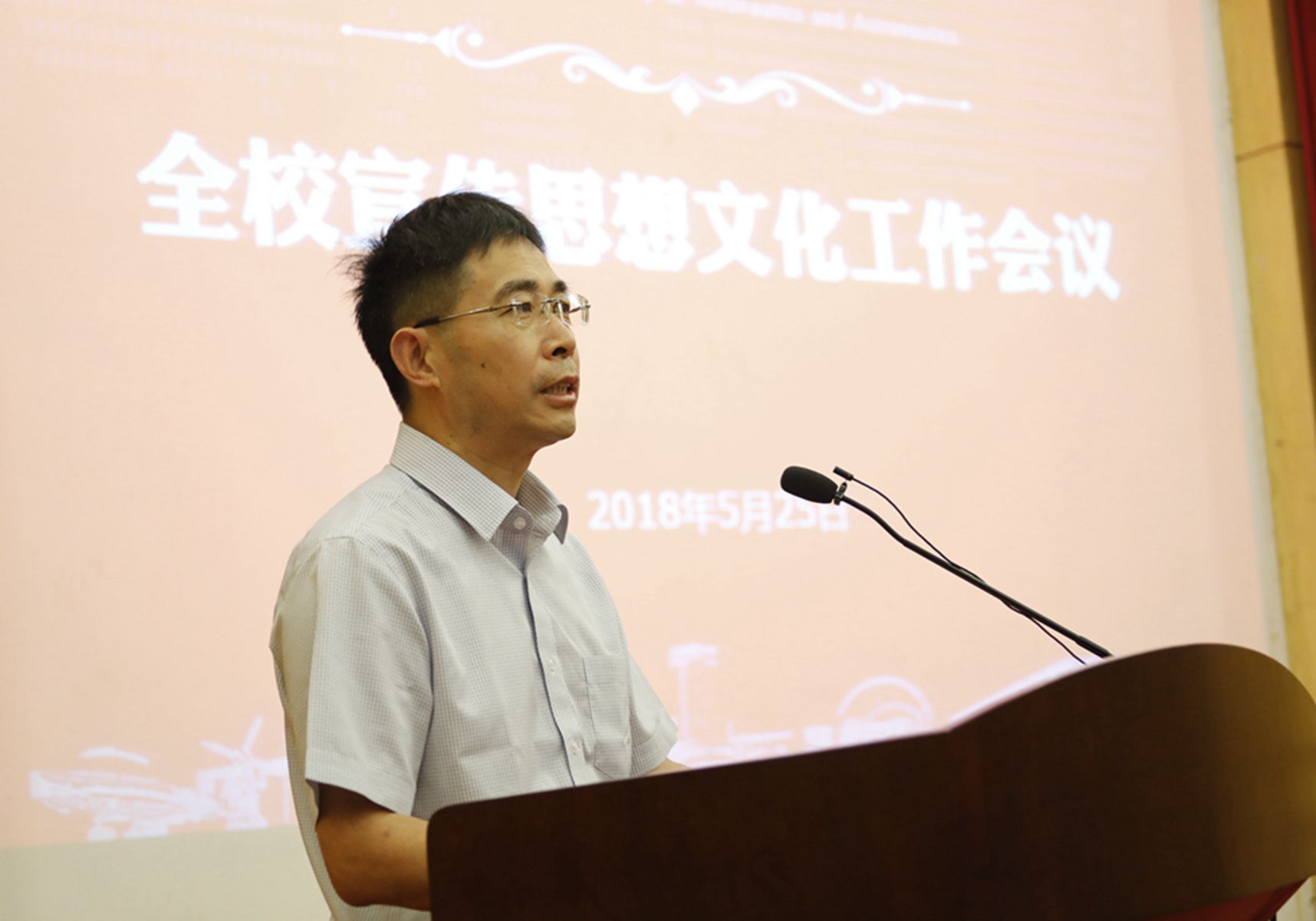 为深入学习贯彻习近平新时代中国特色社会主义思想和党的十九大精神,做好新形势下学校宣传思想文化工作,5月25日,全校宣传思想文化工作会议在明故宫校区科学馆报告厅召开。会议系统总结了六年来我校宣传思想文化工作的经验,科学研判当前工作形势,并对下一阶段工作作出全面部署。校党委书记郑永安,校纪委书记杭育新,新闻发言人、校长助理熊克,党委常委、组织部部长李遥,党委常委、宣传部部长王晖出席会议。校纪委书记杭育新主持会议。