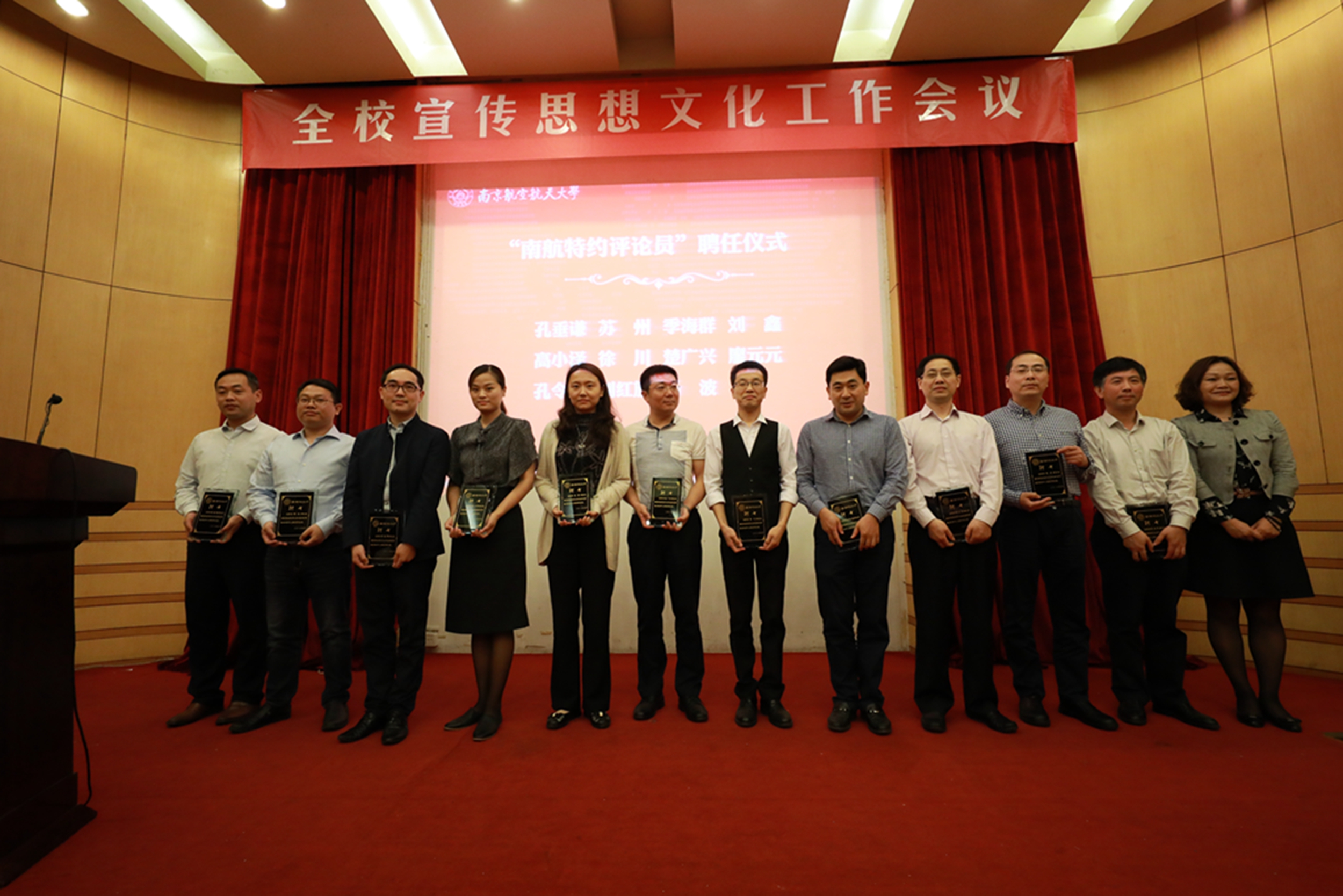 会上颁发了宣传思想文化工作先进单位、先进个人、“喜迎党代会·砥砺奋进的六年”十佳专稿、南航好新闻奖,举行了首批特约评论员聘任仪式和“新媒体联盟”揭牌仪式。郑永安与院级党组织责任人签订了意识形态工作责任书。