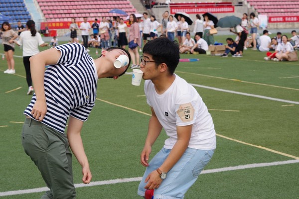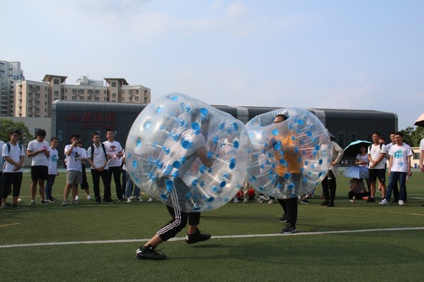 活动以运动创造快乐为主旨,采取竞赛的形式进行。竞赛项目有“不倒森林”、“你是我的眼”、“球球大作战”、“趣味相扑”、“三角拔河”等。各项比赛独立积分,按总积分进行排名。比赛期间同学们积极参与,掌声、笑声、加油声,此起彼伏,场上场下互动交流频繁,整个比赛过程充满了愉悦的气氛。即使天气炎热也丝毫没有影响到同学们的热情,操场上活跃着运动员们矫健的身影。活动还设置了观众互动区,在这里,运动健儿们与观众们共同参与活动,活力四射,大家互动频繁,虽不是竞赛,但依旧保持着竞技精神。
