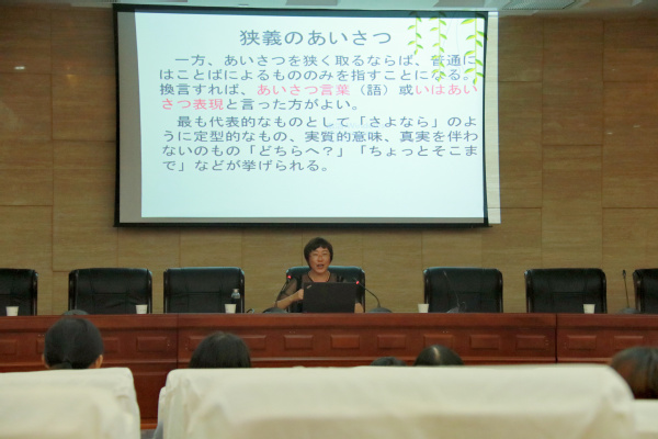 5月28日下午,应外国语学院邀请,苏州大学外国语学院施晖教授在外语学院国际会议中心举办了主题为“中日两国交际语言行为比较研究”的学术讲座。外国语学院日语系主任窦硕华老师主持本次讲座,副院长徐以中教授、日语系师生和部分英语系学生与会聆听。