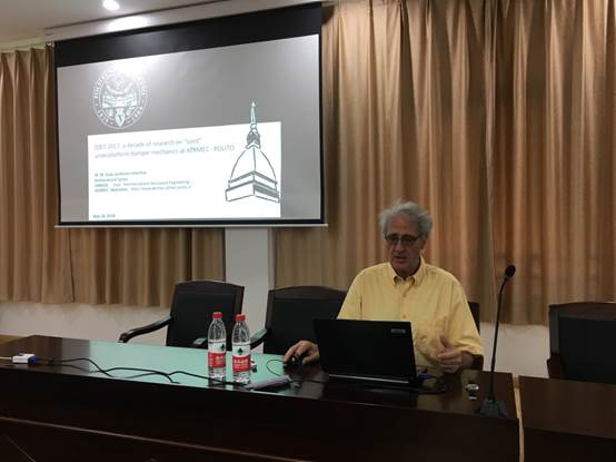 28日上午, GOLA在十号楼619报告厅作了题为“2007-2017: A decade of research on “solid” underplatform damper mechanicsat AERMEC-POLITO”的学术报告,介绍了其领导的AERMEC实验室在航空发动机叶片干摩擦阻尼领域的最新研究进展。学术报告会由臧朝平主持,学院强度与振动工程系部分教师和博士、硕士研究生共30余人参加了此次报告。