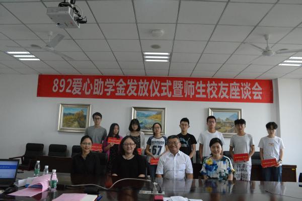 6月8日,计算机学院“892爱心助学金”发放仪式暨校友师生座谈会在学院509会议室举行,“892爱心助学金”出资校友代表何军、张晓红,计算机学院党委书记刘健荣、党委副书记管祎、各年级辅导员以及受资助学生参加了此次活动。活动由管祎主持。
