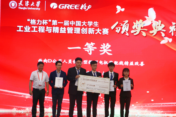 6月9日,由中国机械工程学会和教育部高等学校工业工程类专业教学指导委员会联合主办、天津大学承办的“格力杯”第一届中国大学生工业工程与精益管理创新大赛决赛在天津大学正式拉开序幕,我校经济与管理学院两支团队入围全国总决赛。其中,由陈剑老师指导的楚军帅、王玉全、张敏、王加豪团队的“面向D公司人员依赖型微型电机装配线精益改善”案例荣获全国一等奖,由方志耕老师指导的邱禄芸、许宸豪、王雅迪、罗建竹团队的“A公司大型风机齿轮箱健康状态预测与故障诊断”案例荣获全国二等奖。
