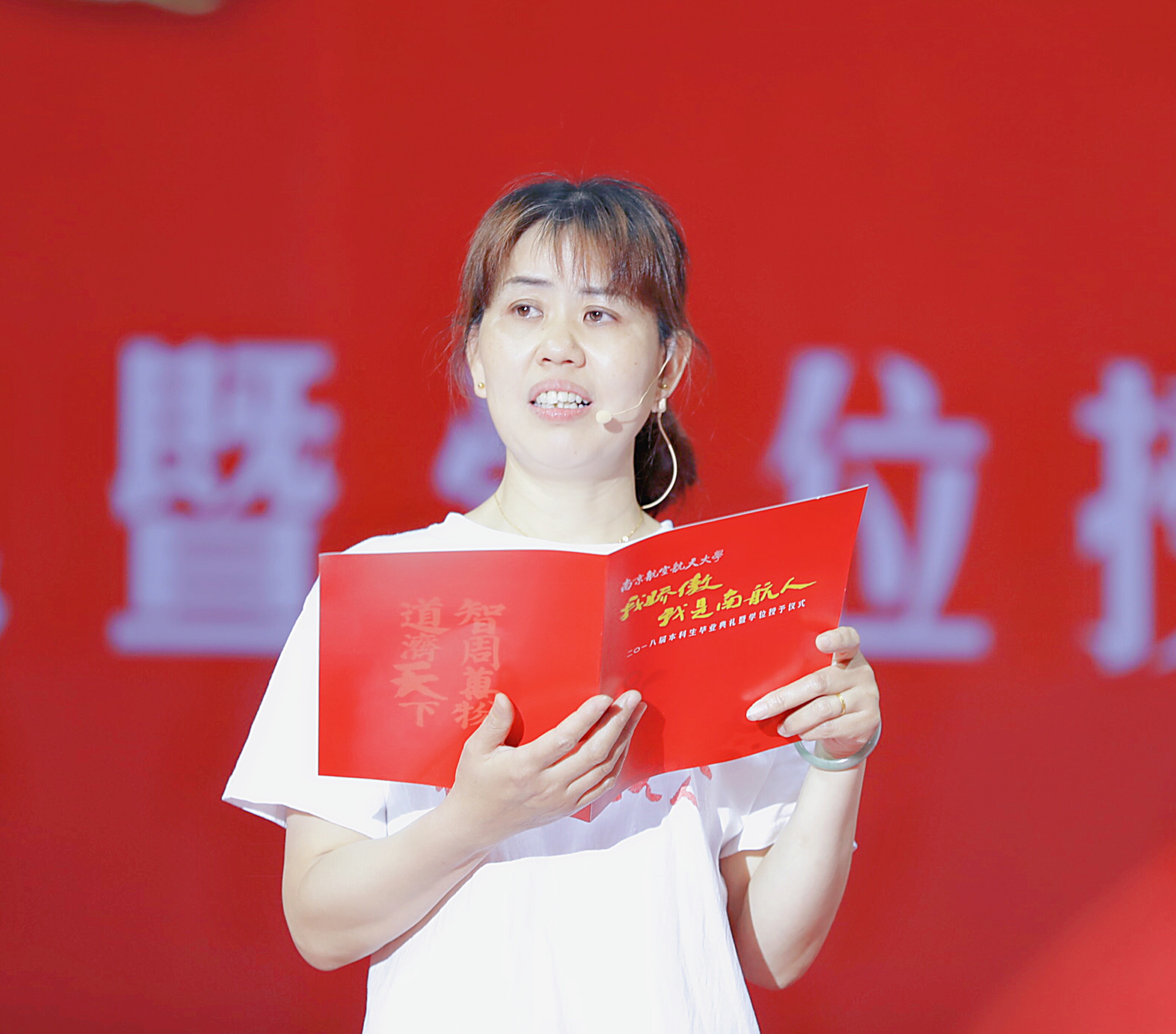 下午16时,将军路校区艺术中心剧场,留学生公寓管理员阿姨袁晓珍、公寓服务中心陈昊也受邀参加了2018届留学生本科生毕业典礼。袁阿姨一登场亮相,即受到同学们的热情欢呼,场内不断传来嬉闹声、尖叫声、口哨声。袁晓珍十分感动,尽管不能用英语表达内心的情感,接受了献花并默默地向在场的毕业生鞠躬致敬。陈昊特意准备英文朗诵,为留学生送上祝福:“This is the day NUAA have been preparing for you,Since you walked through that classroom door on your first day,Now it is time to say goodbye”
