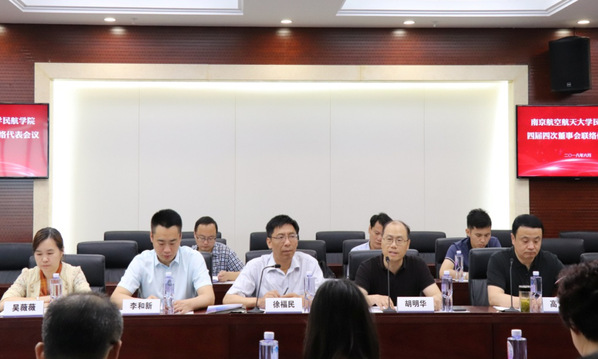 民航学院院长胡明华代表学院作2016-2018年工作汇报。他从师资队伍建设、学科科研、教学管理、人才培养、国际合作以及董事会工作等方面阐述了民航学院近两年来取得的成绩。他表示,学院将进一步发挥董事会的桥梁纽带作用,依托行业背景,整合科学研究和人才资源,产学研用结合,培育民航精英。希望学院与各董事单位在民航强国的战略背景下,抢抓机遇,深化合作,各尽所长,共同为民航事业的发展贡献力量。
