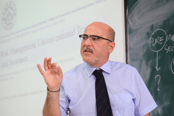 来自意大利锡耶纳大学的Maurizio Pompella教授是我校的老朋友,这已经是他第4次来到南京了。目前,他正在和我校共同推进总经费近100万欧元的欧盟ERASMUS+校企合作育人项目。今年,他为同学们带来了“风险管理、非常规转移和保险”这门课程,在授课中他发现,越来越多的学生能够很好地融入课堂讨论,并且自信地表达自己的想法。