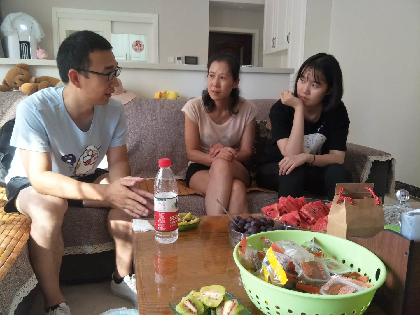 对于学生来说,明确的未来规划能够帮助其充分利用好有限的时间,也能够成为其实现既定目标的不竭动力。7月20日,学院两位辅导员对家住南京本地的大一学生石珂羽家庭进行了家访。在大一一年的学习中,石珂羽获得了年均绩点4.1的好成绩,同时,获得了江苏省高等数学竞赛一等奖等荣誉。成绩优异的石珂羽对接触科研充满困惑,未来规划也因此遇到了瓶颈。辅导员邱禄芸帮助石珂羽理清了学习、科研、生活三者间的关系,同时围绕“主动”二字,为石珂羽在科研上提出了建议,帮助其认清自我所需,进一步明确了未来规划。